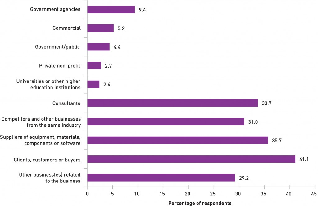 Chart: Collaboration by innovation-active businesses within Australia, by type of organisation collaborated with, 2008–09. Source: http://www.industry.gov.au/science/policy/AustralianInnovationSystemReport/AISR2011/chapter-4-links-and-collaboration/knowledge-exchange/index.html
