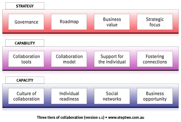 Three tiers of collaboration. Written by James Robertson. http://www.steptwo.com.au/columntwo/three-tiers-of-collaboration/